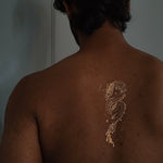 Designed by an artist based in Mumbai, Shaina Tanna, Liquid Gold Dragon Codex contains the sacred knowledge of dragons who mastered the art of liquid flame, their wisdom preserved in aureate ink that seems to drip with celestial fire. This isn't just a tattoo — it's a manuscript written in the language of gods.