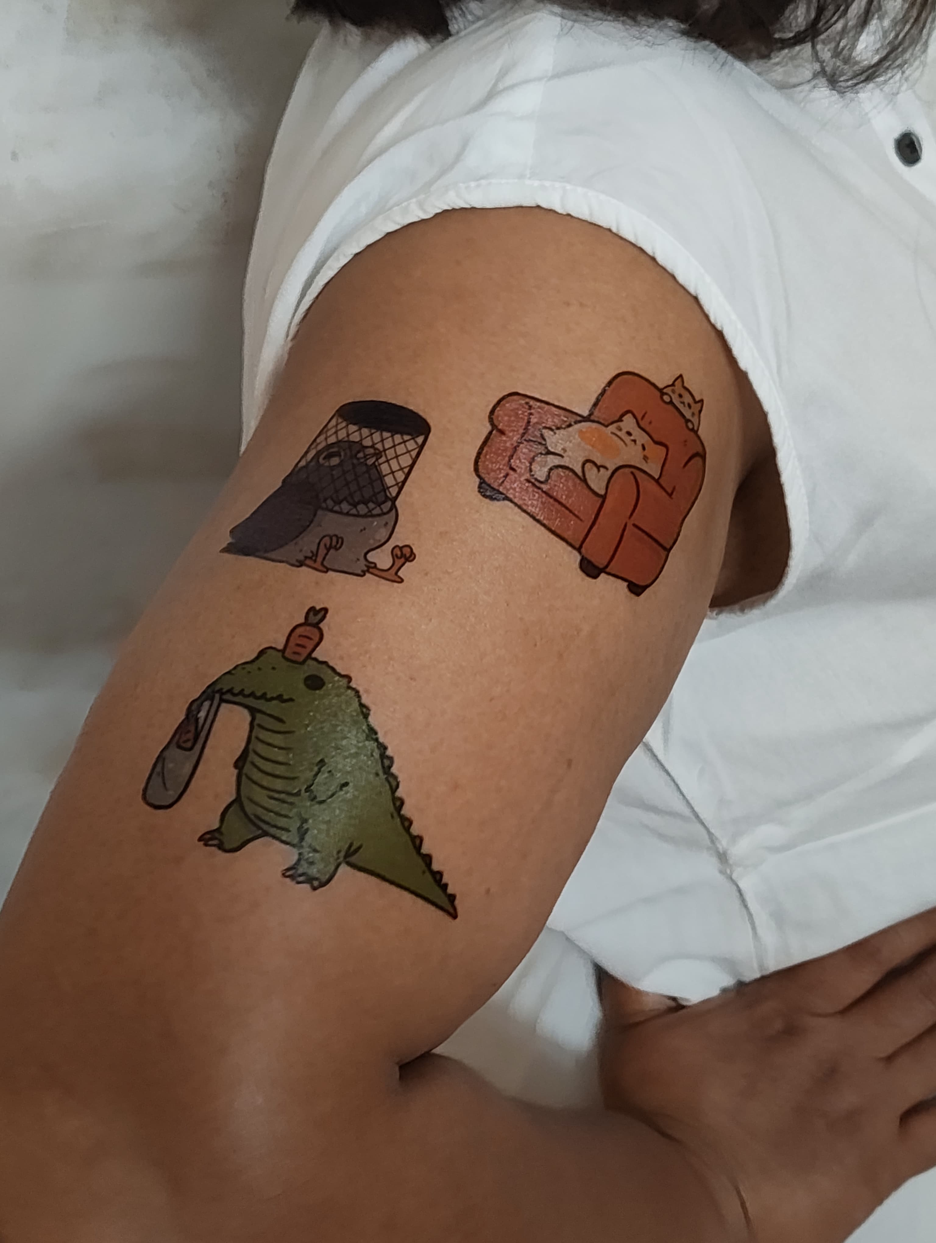 Totally DIY! Just follow our easy instructions and you'll be rocking your new tattoo in no time. Pro tip: get a friend for those hard-to-reach spots.