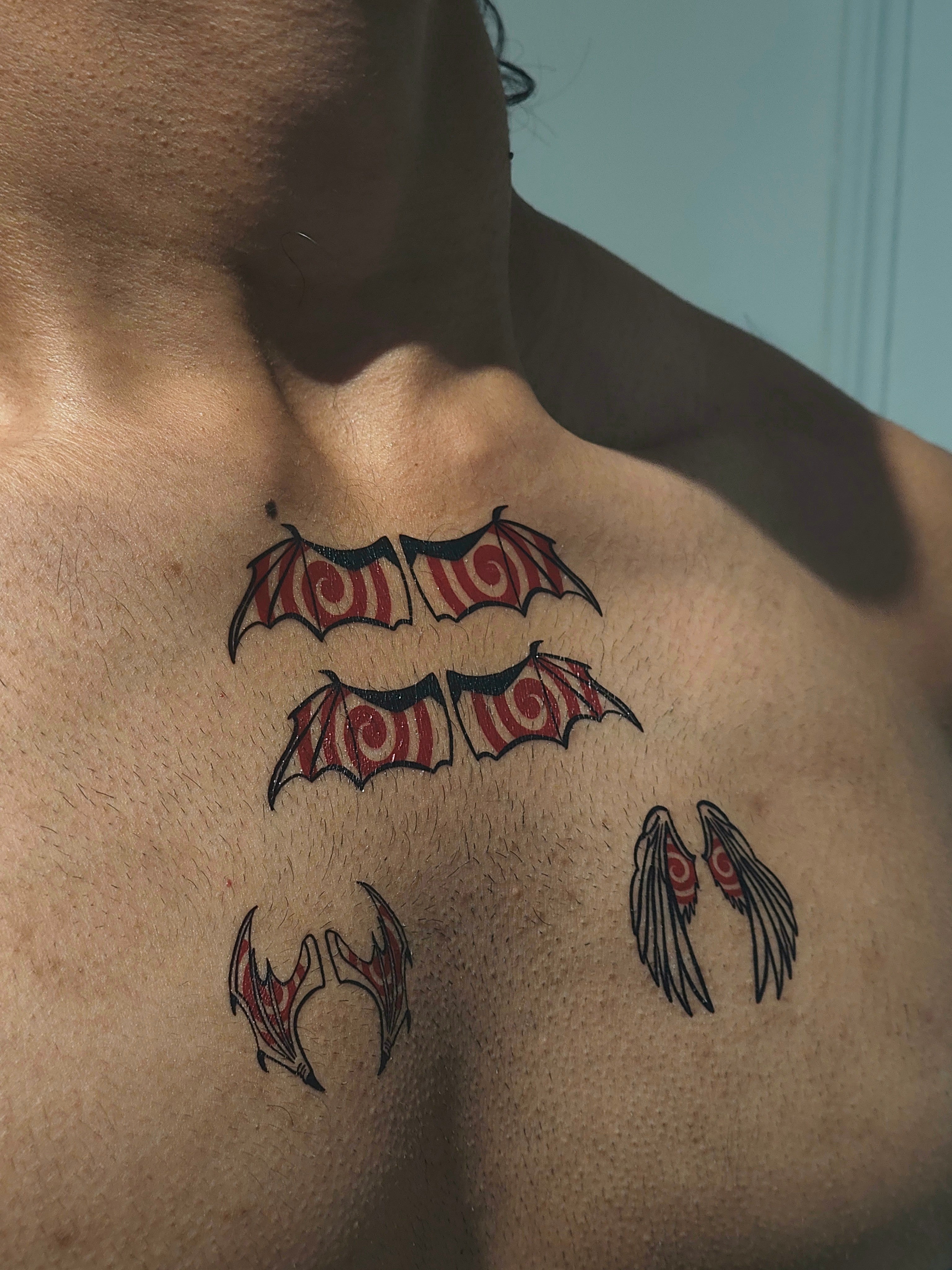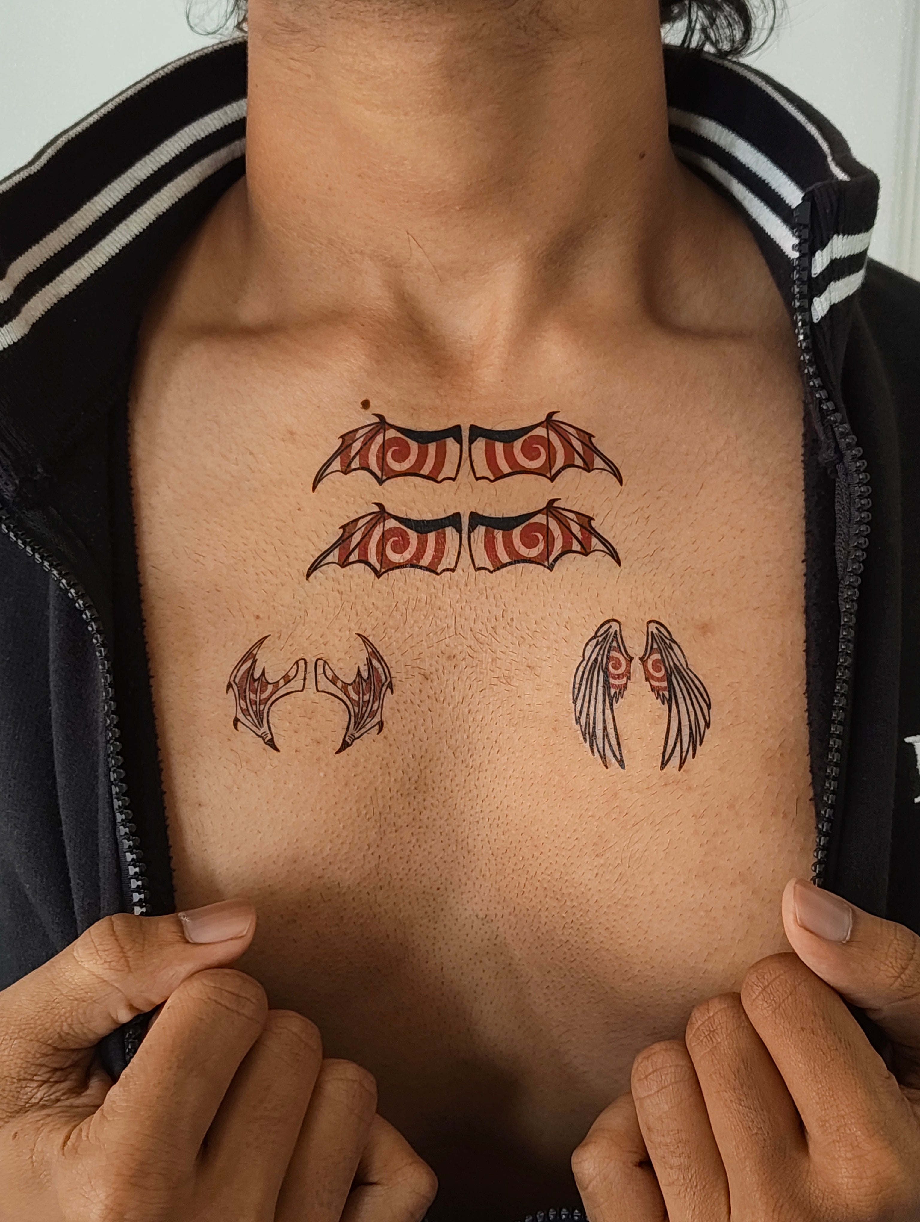 Designed by an artist based in Bengaluru, Harsh, Hypnotic Flight of the Fallen tells the tale of wings once pure, now etched with spirals of madness and fire. These designs carry the duality of angels and demons, where beauty is bound to chaos and every curve hums with forbidden energy.