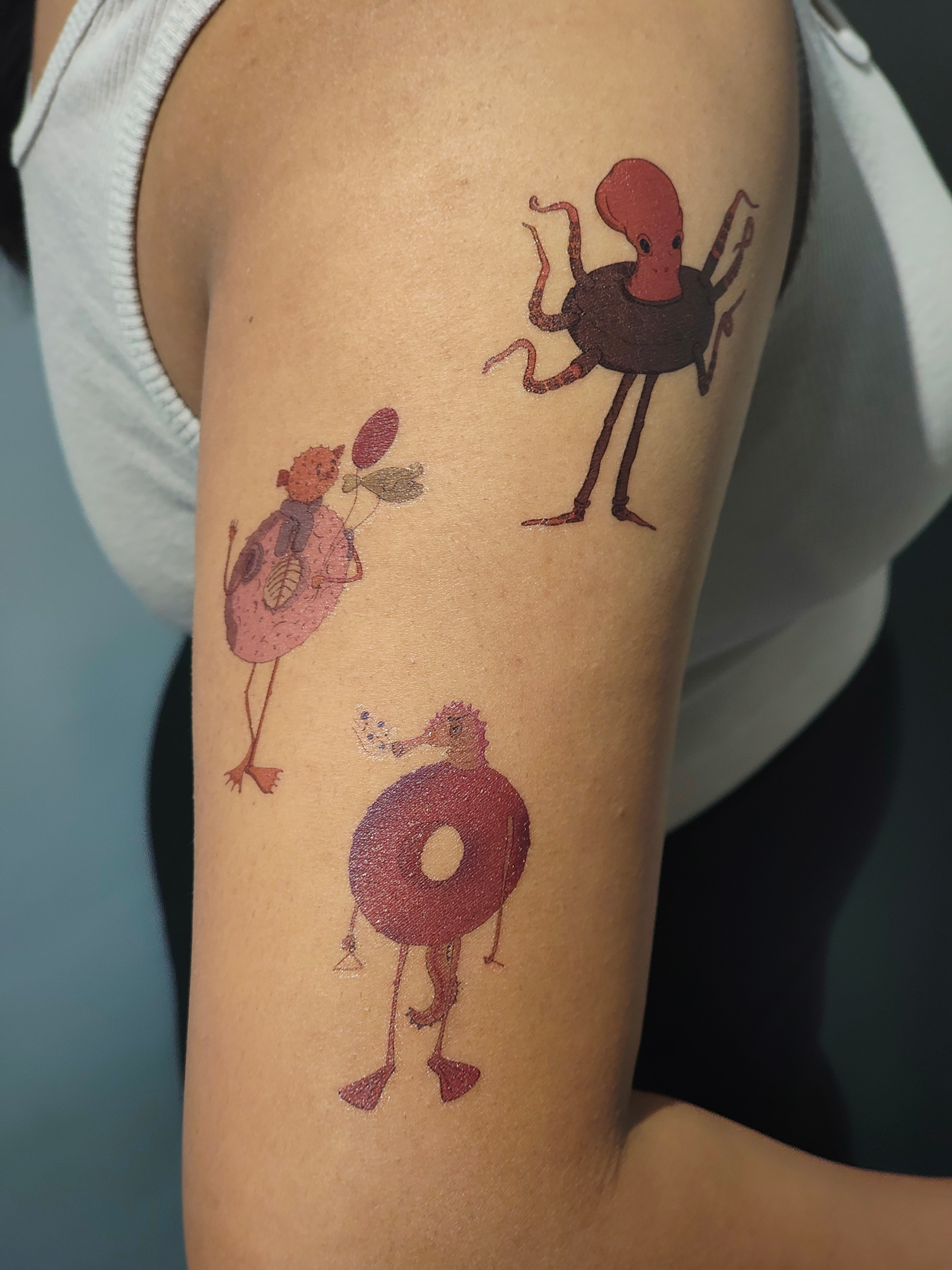- Whimsical donut beings with their quirky companions, symbolizing joy, sweetness, and the beauty of being wonderfully weird