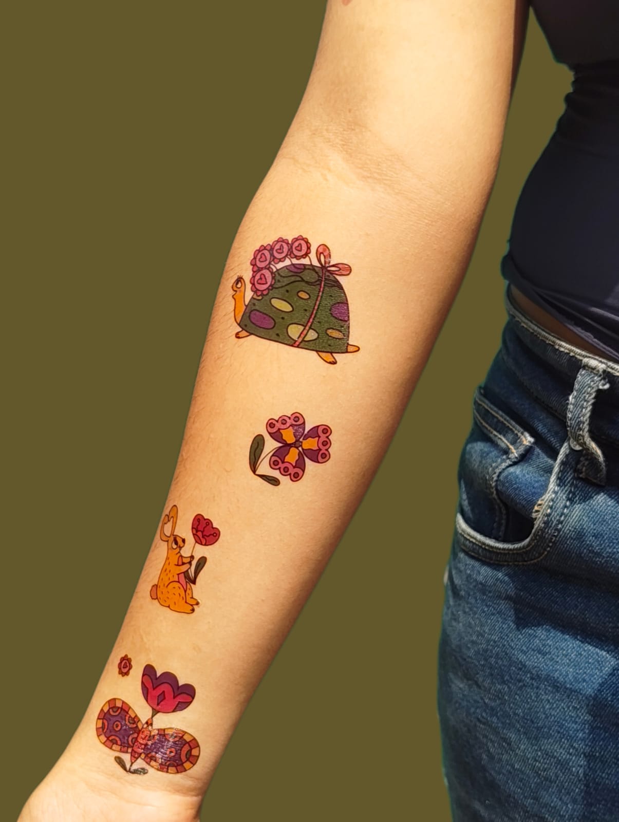 Our tattoos typically last 3-5 days, depending on placement and care. Avoid oil-based products and excessive rubbing for longer wear.