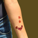 3. Voila, your temporary tattoo is ready to showcase! It should last 3-5 days. To remove sooner, gently rub with baby oil or an oil-based makeup remover, then rinse.
