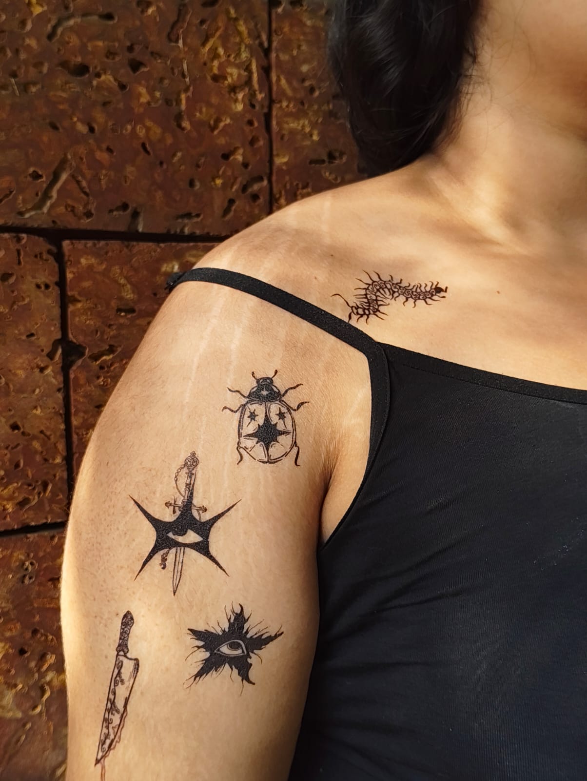 Crafted on a 4×6 inch sheet, these tattoos are bold, intricate, and designed to strike fear and fascination in equal measure.