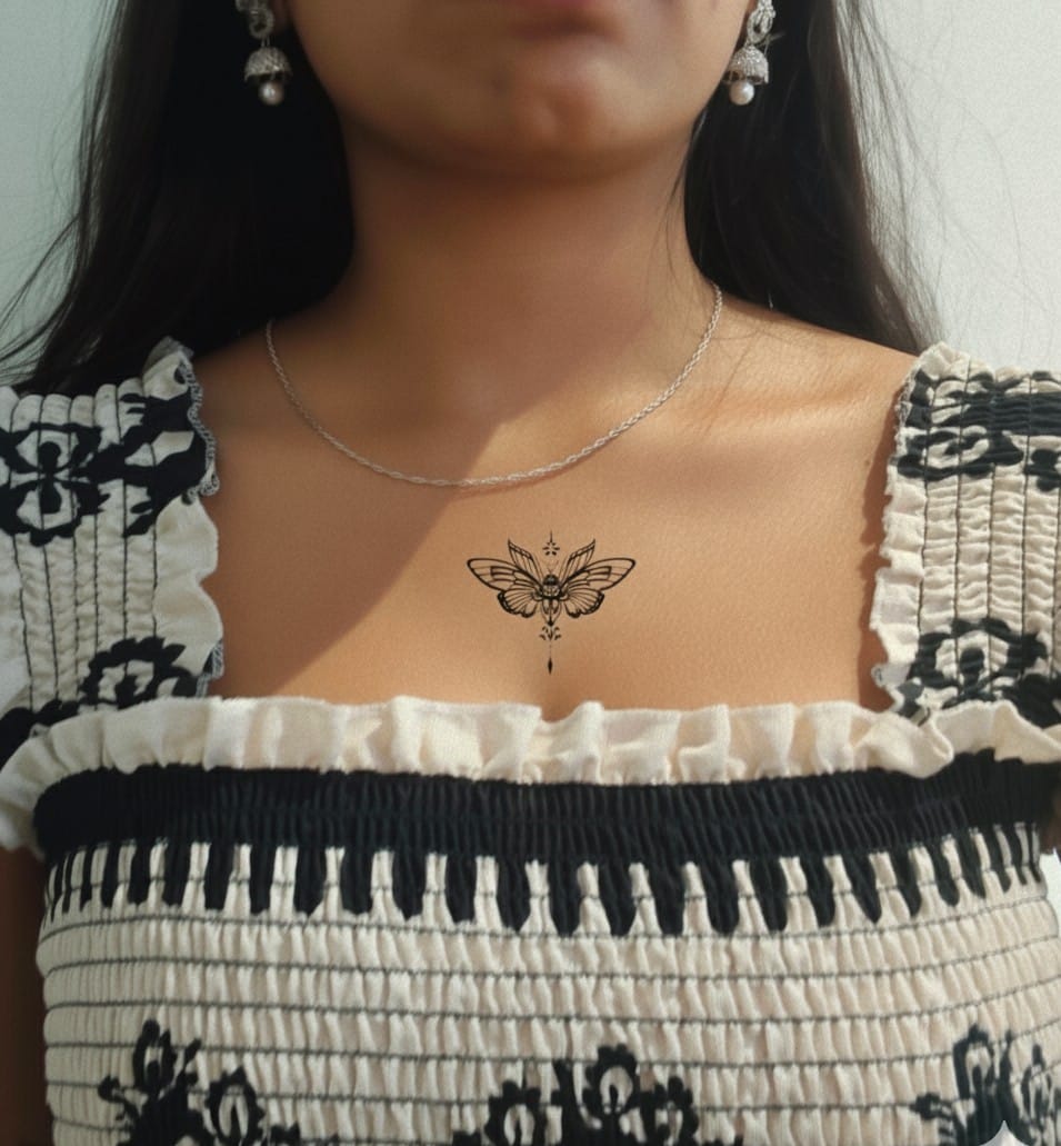 Designed by an artist based in Mumbai, Anjj.inks. The Moth Remembers Light — and honestly, it feels like a whole late-night poem you can wear on your skin. Think of it as a little reminder that even in the quietest, darkest hours, you’re still drawn to brightness.