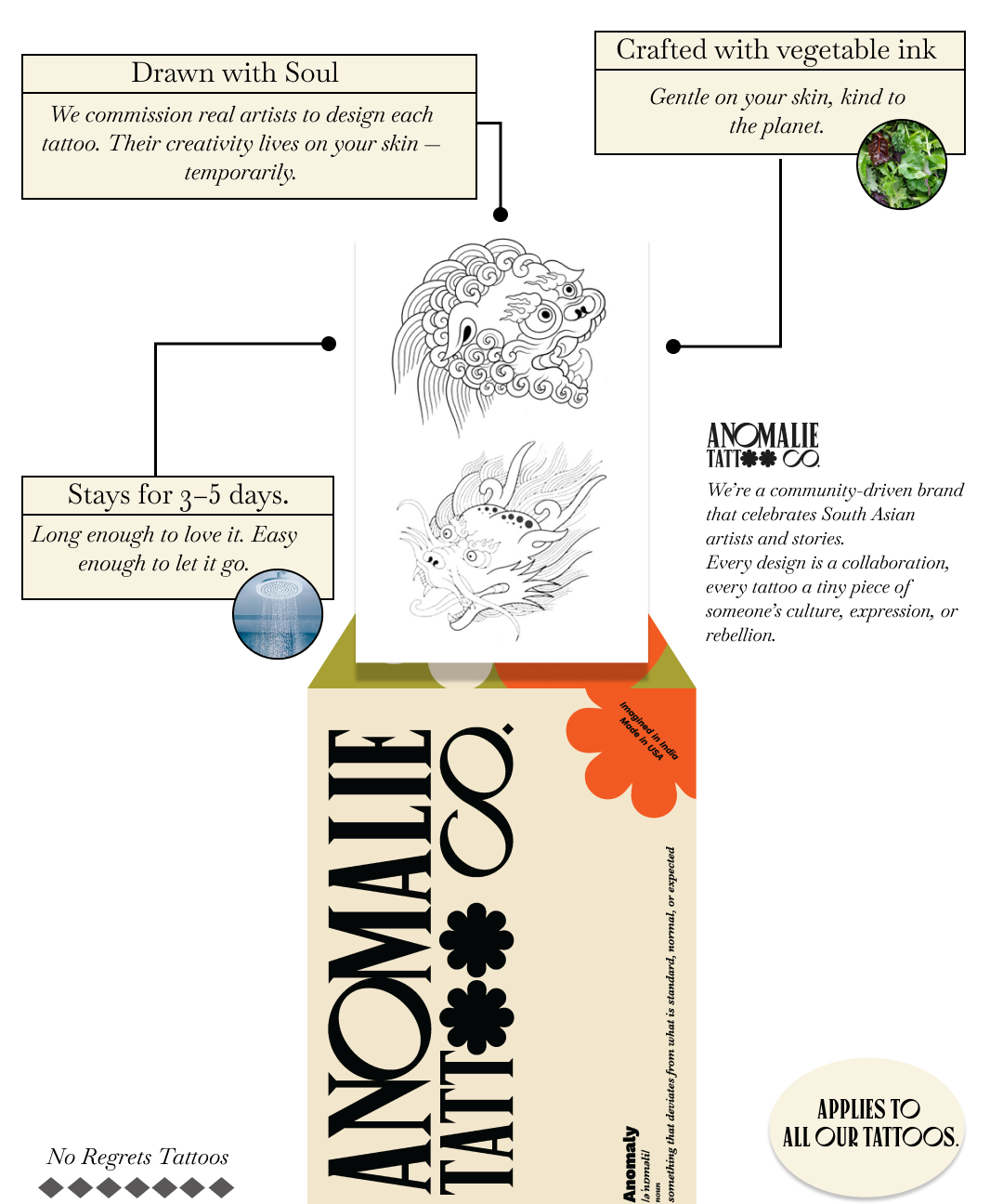 With zero commitments come zero regrets. We haul designs from South Asian tattoo artists and illustrators that you can sport proudly