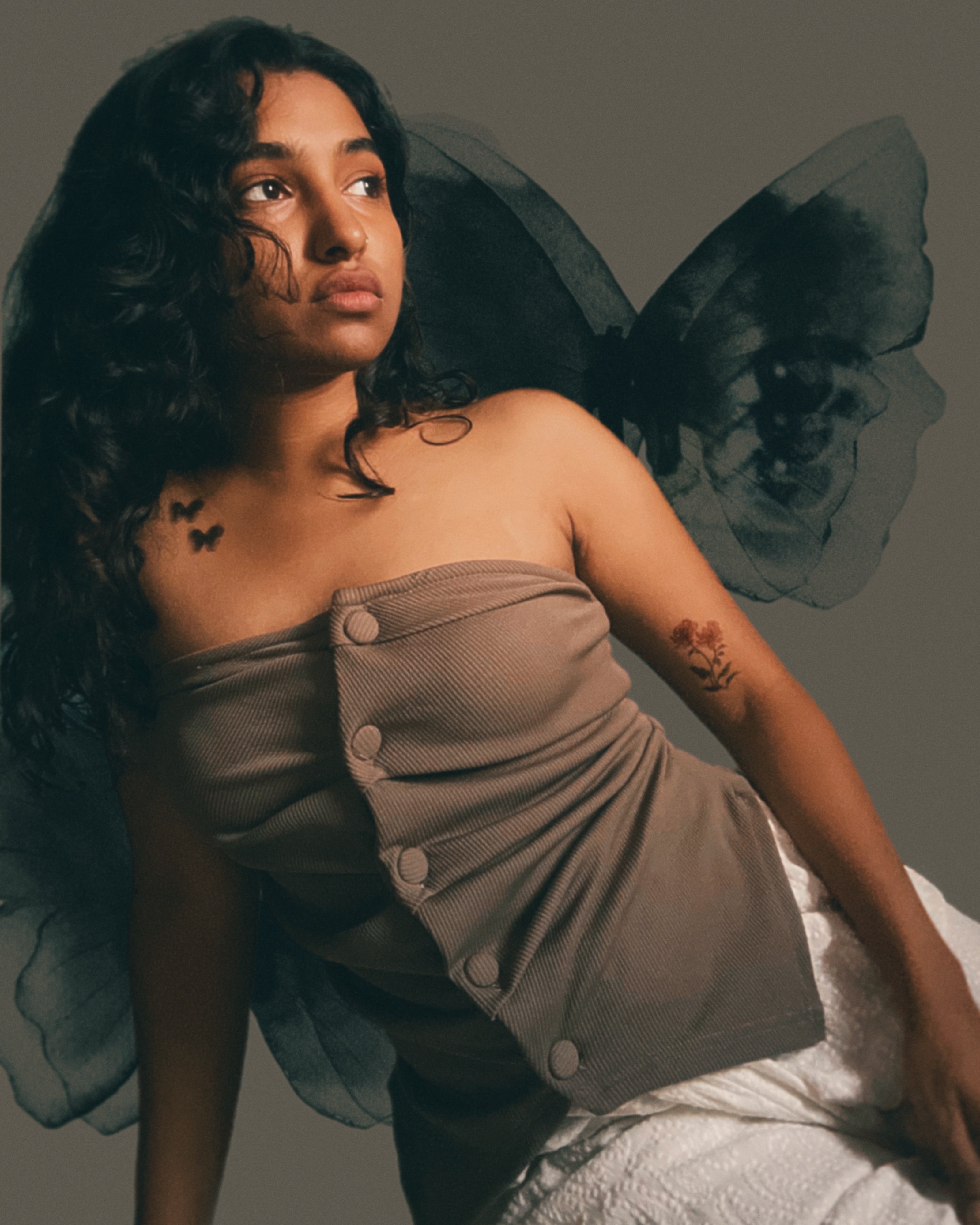 For the ones who carry a bit of darkness with their light. These translucent, smoky butterflies are like a whisper from another world – fragile, mysterious, and a little haunting. Perfect for your forearm, upper arm, thigh, or even a subtle touch on the side of your face, where they can catch the light and flicker like a passing thought.
